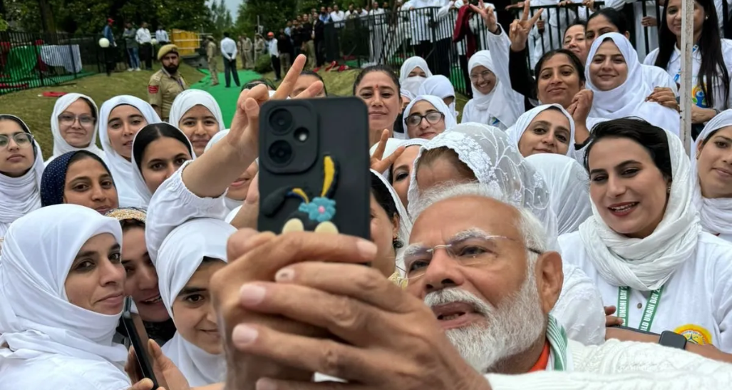 PM Modi leads Yoga session at SKICC in Srinagar on International Yoga Day, clicks pictures with practitioners